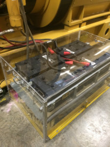 Above is an example of a custom battery containment box for a data center back-up generator. 3/8" acrylic with reinforced corners.